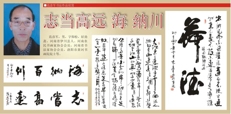 范彦军,男,字仰松,好劲斋,河南省伊川县人。河南农民书画家协会会员,河南省书法家协会会员,洛阳市黄河书画院院士等。