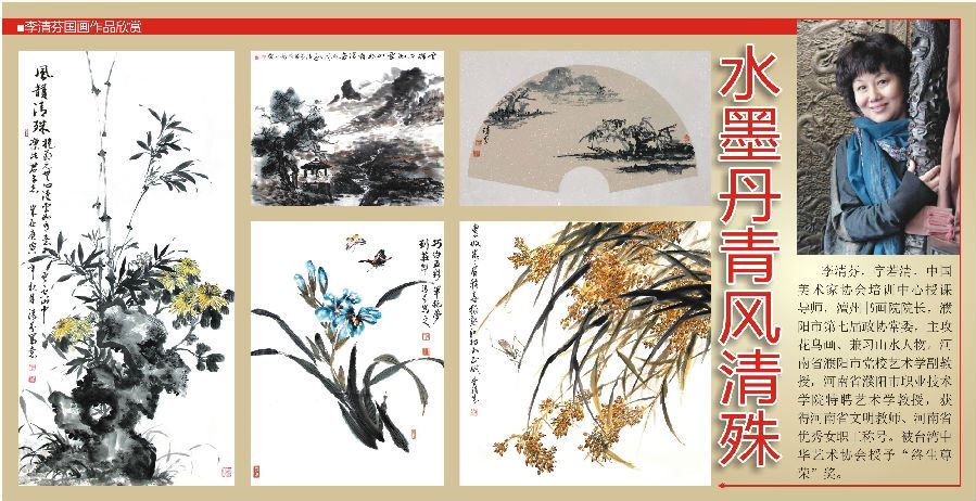 李清芬,字若清。中国美术家协会培训中心授课导师,澶州书画院院长,濮阳市第七届政协常委,主攻花鸟画、兼习山水人物。河南省濮阳市党校艺术学副教授,河南省濮阳市职业技术学院特聘艺术学教授,获得河南省文明教师、河南省优秀女职工称号。被台湾中华艺术协会授予“终生尊荣”奖。