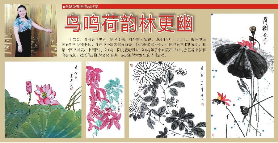 李慧英,曾用名李惠英,笔名李颖,雅号魅力紫伊。1964年7月生于北京。现任中国国画研究院秘书长。并在中华清风书画协会、香港美术家协会、中国书画艺术研究院、和谐中国书画院、中国国礼书画院、阳光鑫源国际书画院等多个画院和书画协会任秘书长和名誉院长。擅长策划组织文化活动,多次组织大型公益书画活动。