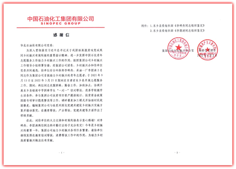 近日,公司党委收到了一封来自集团公司的感谢信,充分肯定了公司为助力乡村振兴所作出的积极贡献。