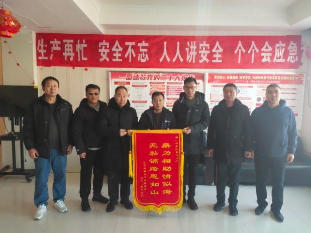 1月25日,巴音庆格利嘎查委会将一面印有“鼎力相助情似海 无私铺路恩如山”的锦旗送至采气二厂油地工作队,以感谢采气二厂近年来对嘎查铺路支援,对乡村建设的支持。这是该厂与当地民众建立深厚友谊的石化印记,更是该厂持续助力乡村振兴的强劲动力。(图文:黄卫红)