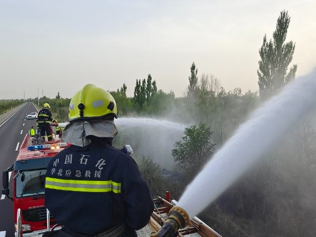 近日,采服中心接驻地交管部门求助,称包茂高速红碱淖路段中分带内有大片松柏着火,威胁双向来往车辆行车安全。接警后,应急抢险中心迅速出动两台水罐消防车及9名指战员赶赴现场,利用车载炮对现场火势进行快速处置,及时解除火灾险情警报,得到了交管部门和当地群众的赞扬。(张惠军)