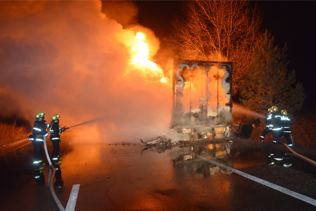 事故现场,冲天的火光照亮了夜空,冷风里夹带着滚滚热浪。司乘人员已转移到了安全地带,但熊熊燃烧的大火导致该高速路段临时性采取交通封闭措施,给过往车辆造成了很大影响。应急抢险中心立即展开扑救工作。